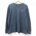 XL★古着 ラルフローレン 長袖 ブランド Tシャツ メンズ ワンポイントロゴ コットン クルーネック 薄紺 霜降り