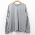 XL★古着 長袖 Tシャツ メンズ CAT 胸ポケット付き 大きいサイズ クルーネック グレー 霜降り