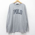 XL★古着 ラルフローレン Ralph Lauren 長袖 ブランド Tシャツ メンズ ビッグロゴ 大きいサイズ ロング丈 コットン クルーネック グレー 霜降り 【spe】 25feb28 中古