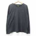 XL★古着 ラルフローレン Ralph Lauren 長袖 ブランド Tシャツ メンズ ワンポイントロゴ コットン Vネック 濃グレー 霜降り 25feb28 中古