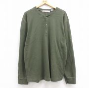 XL★古着 ランズエンド 長袖 ビンテージ サーマル Tシャツ メンズ 90年代 90s 無地 大きいサイズ コットン ヘンリーネック USA製 緑