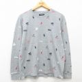 【商品名】 XL★古着 ラルフローレン 長袖 ブランド サーマル Tシャツ メンズ ワンポイントロゴ 総柄 コットン クルーネック グレー
