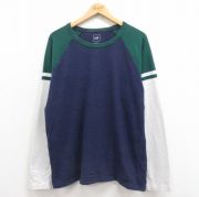 XL★古着 長袖 Tシャツ メンズ ツートンカラー 大きいサイズ コットン クルーネック 紺他