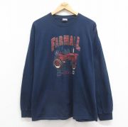 L★古着 長袖 ビンテージ Tシャツ メンズ 00年代 00s 死神 コットン クルーネック 紺