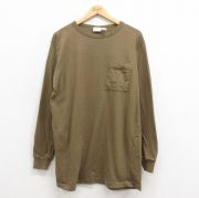 L★古着 長袖 ビンテージ Tシャツ メンズ 90年代 90s 無地 胸ポケット付き コットン クルーネック 緑