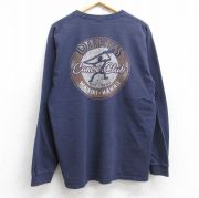 L★古着 長袖 ビンテージ Tシャツ メンズ 00年代 00s DUKES カヌークラブ コットン クルーネック 紺