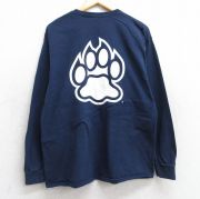 L★古着 長袖 ビンテージ Tシャツ メンズ 00年代 00s UNH 肉球 コットン クルーネック 紺