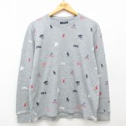 XL★古着 ラルフローレン 長袖 ブランド サーマル Tシャツ メンズ ワンポイントロゴ 総柄 コットン クルーネック グレー