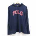XL★古着 ラルフローレン Ralph Lauren 長袖 ブランド Tシャツ パーカー メンズ ビッグロゴ 刺繍 コットン 紺 ネイビー 25mar14 中古