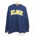 【商品名】 XL★古着 長袖 ビンテージ Tシャツ メンズ 90年代 90s DELAWARE コットン クルーネック USA製 紺