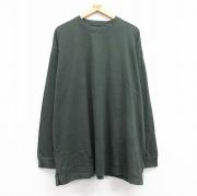 XL★古着 長袖 Tシャツ メンズ 無地 大きいサイズ ロング丈 コットン クルーネック 濃緑