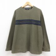 XL★古着 長袖 Tシャツ メンズ 大きいサイズ コットン クルーネック 緑
