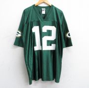 XL★古着 半袖 ビンテージ フットボール Tシャツ メンズ 00年代 00s NFL グリーンベイパッカーズ アーロンロジャース 12 大きいサイズ ロング丈 Vネック 緑 ユニフォーム ゲームシャツ アメフト スーパーボウル