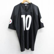 XL★古着 半袖 フットボール Tシャツ メンズ NFL ピッツバーグスティーラーズ サントニオホームズ 10 大きいサイズ ロング丈 Vネック 黒 ユニフォーム ゲームシャツ アメフト スーパーボウル