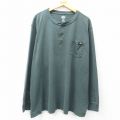 XL★古着 ディッキーズ Dickies 長袖 Tシャツ メンズ 胸ポケット付き 大きいサイズ ロング丈 コットン ヘンリーネック 緑 グリーン 25apr26 中古