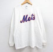 XL★古着 長袖 ビンテージ Tシャツ メンズ 00年代 00s MLB ニューヨークメッツ サブウェイ コットン クルーネック 白 メジャーリーグ ベースボール 野球