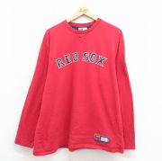 XL★古着 ナイキ NIKE 長袖 ビンテージ Tシャツ メンズ 00年代 00s MLB ボストンレッドソックス 刺繍 コットン クルーネック 赤 メジャーリーグ ベースボール 野球