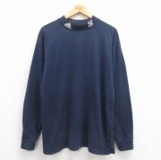 XL★古着 ナイキ NIKE ゴルフ 長袖 Tシャツ メンズ MLB ニューヨークヤンキース ワンポイントロゴ 大きいサイズ ロング丈 モックネック ハイネック 紺 メジャーリーグ ベースボール 野球