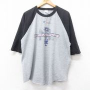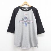 XL★古着 7分袖 ビンテージ Tシャツ メンズ 00年代 00s MLB ニューヨークメッツ ラグラン ツートンカラー クルーネック グレー 霜降り他 メジャーリーグ ベースボール 野球