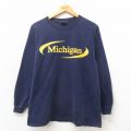 【商品名】 L★古着 STEVE&BARRYS 長袖 Tシャツ メンズ ミシガン コットン クルーネック 紺
