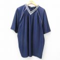 XL★古着 チャンピオン champion 半袖 ビンテージ フットボール Tシャツ メンズ 80年代 80s 無地 メッシュ地 大きいサイズ ロング丈 Vネック USA製 紺 ユニフォーム ゲームシャツ