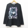 【商品名】 XL★古着 長袖 ビンテージ Tシャツ 00年代 00s インディアン オオカミ 大きいサイズ コットン クルーネック 黒