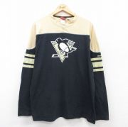 XL★古着 リーボック 長袖 ビンテージ Tシャツ メンズ 00年代 00s NHL ピッツバーグペンギンズ 大きいサイズ コットン クルーネック 黒他 アイスホッケー