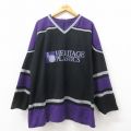 XL★古着 長袖 ビンテージ Tシャツ アイスホッケー ジャージ メンズ 00年代 00s ヘリテージ 大きいサイズ メッシュ地 Vネック 黒 ユニフォーム ゲームシャツ