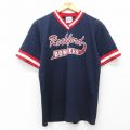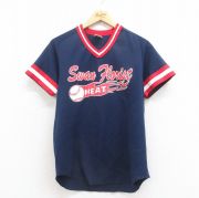 【商品名】 M★古着 半袖 ビンテージ Tシャツ メンズ 90年代 90s Rockland BOMBERS 5 メッシュ地 Vネック USA製 紺 ユニフォーム ゲームシャツ