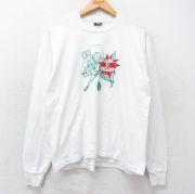 【商品名】 L★古着 長袖 ビンテージ Tシャツ メンズ 90年代 90s バレーボール コットン クルーネック 白