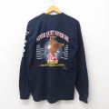L★古着 長袖 Tシャツ メンズ バイク コットン クルーネック USA製 黒