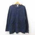XL★古着 長袖 サーマル Tシャツ メンズ 無地 大きいサイズ ヘンリーネック 紺