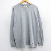 XL★古着 ラッセル 長袖 Tシャツ メンズ 無地 クルーネック グレー 霜降り