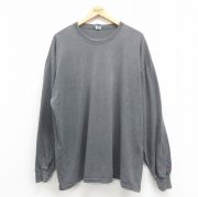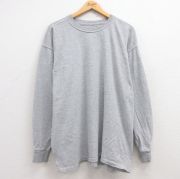 XL★古着 長袖 Tシャツ メンズ 無地 大きいサイズ クルーネック グレー 霜降り