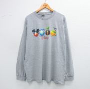 XL★古着 長袖 Tシャツ メンズ ディズニー ミッキー ドナルド 大きいサイズ クルーネック グレー 霜降り