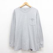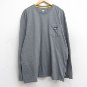 XL★古着 長袖 Tシャツ メンズ CAT 胸ポケット付き 大きいサイズ クルーネック グレー 霜降り
