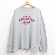 XL★古着 ROOTS 長袖 ビンテージ Tシャツ メンズ 00年代 00s ビッグロゴ 大きいサイズ クルーネック カナダ製 グレー 霜降り