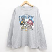 XL★古着 長袖 Tシャツ メンズ ピーナッツ スヌーピー 大きいサイズ クルーネック グレー 霜降り