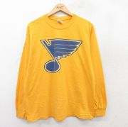 L★古着 長袖 ビンテージ Tシャツ メンズ 00年代 00s NHL セントルイスブルース バドライト ビール コットン クルーネック 黄 アイスホッケー