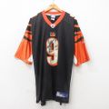 【商品名】 XL★古着 リーボック 半袖 ビンテージ フットボール Tシャツ メンズ 00年代 00s NFL シンシナティベンガルズ カーソンパーマー 9 大きいサイズ ロング丈 メッシュ地 Vネック 黒 アメフト スーパーボウル ユニフォーム ゲームシャツ