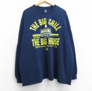 XL★古着 アディダス adidas 長袖 Tシャツ メンズ ミシガン アイスホッケー 大きいサイズ コットン クルーネック 紺