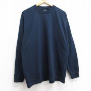 L★古着 長袖 Tシャツ メンズ 無地 クルーネック 紺