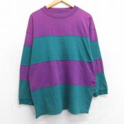 L★古着 長袖 Tシャツ メンズ ツートンカラー クルーネック 紫他