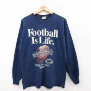 XL★古着 長袖 ビンテージ Tシャツ メンズ 00年代 00s ペンステートニタニーライオンズ フットボール コットン クルーネック 紺