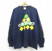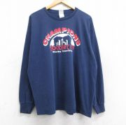 XL★古着 長袖 ビンテージ Tシャツ メンズ 00年代 00s ニタニーライオンズ コットン クルーネック 紺
