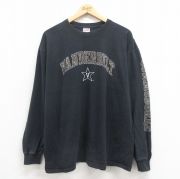 XL★古着 長袖 ビンテージ Tシャツ メンズ 00年代 00s VANDERBILT 大きいサイズ コットン クルーネック 黒