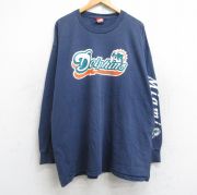 XL★古着 長袖 ビンテージ Tシャツ メンズ 00年代 00s NFL マイアミドルフィンズ 大きいサイズ ロング丈 コットン クルーネック 紺 アメフト スーパーボウル