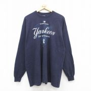 XL★古着 長袖 ビンテージ Tシャツ メンズ 00年代 00s MLB ニューヨークヤンキース 大きいサイズ ロング丈 コットン クルーネック 紺 メジャーリーグ ベースボール 野球