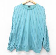 XL★古着 長袖 ビンテージ Tシャツ メンズ 90年代 90s コットン クルーネック 青緑 ストライプ