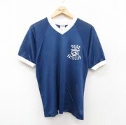 M★古着 長袖 ビンテージ Tシャツ メンズ 00年代 00s サッカー コットン クルーネック 紺
